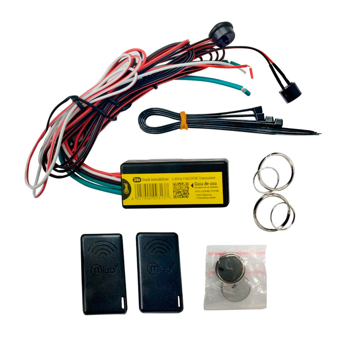 El Inmovilizador de Arranque para camiones 24V de Mlab es un sistema de seguridad diseñado para detener y bloquear el camión si la tarjeta de radiofrecuencia se aleja más de 2 metros del dispositivo. Aquí tienes algunas de sus características principales: