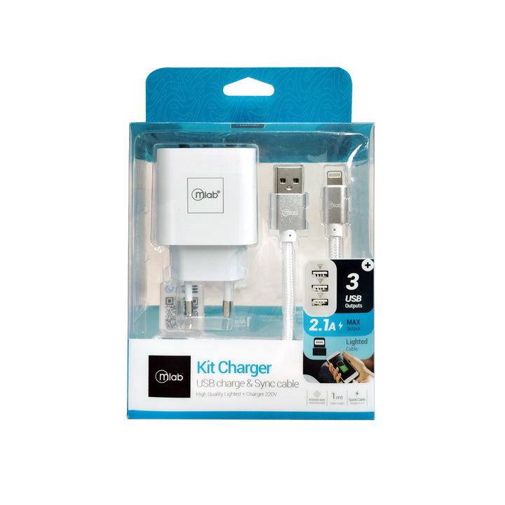 Cargador Kir Charge 2 en 1 Mlab LightningCargador Muro 3 Usb + Cable Iphone Blanco Microlab2 en 1 Kit Chargers & Cable lightning High Quality lightning + Chargers 220V.Cargador 220V para...