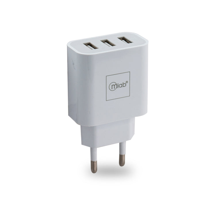 Cargador Muro 3 Usb + Cable Iphone Blanco Microlab