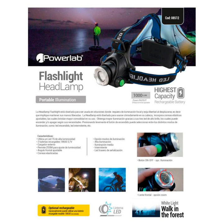 Powerlab Linterna Led De Cabeza Zoom
