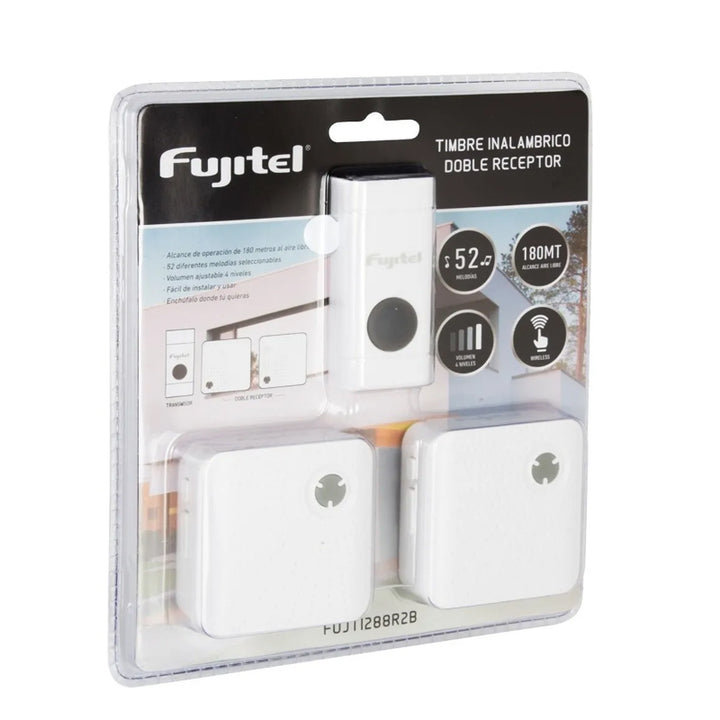 Timbre Inalambrico Fujitel Doble El timbre inalámbrico está especialmente diseñado con materiales de calidad para el uso al aire libre. Posee un diseño moderno, sencillo muy fácil y rápido de conectar....