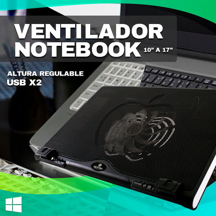 Ventilador Notebook 10” A 17” 2 USB Alto rendimiento